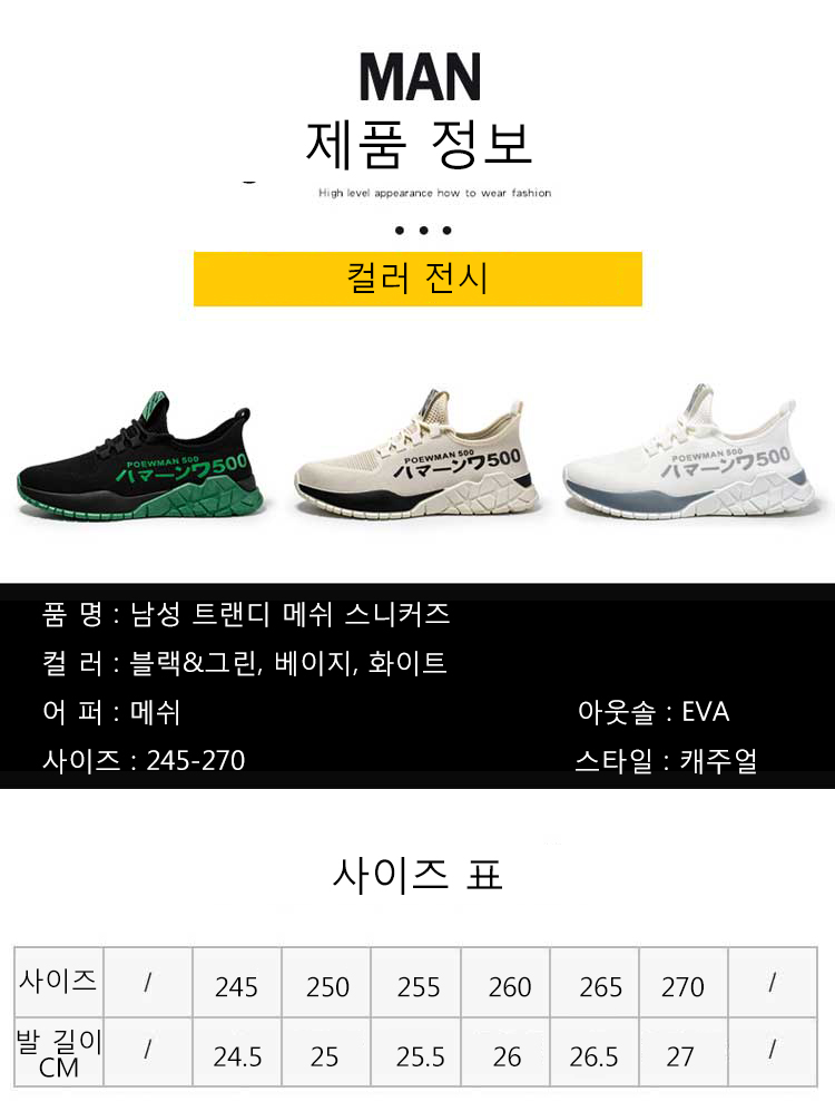 남성 트랜디 메쉬 스니커즈